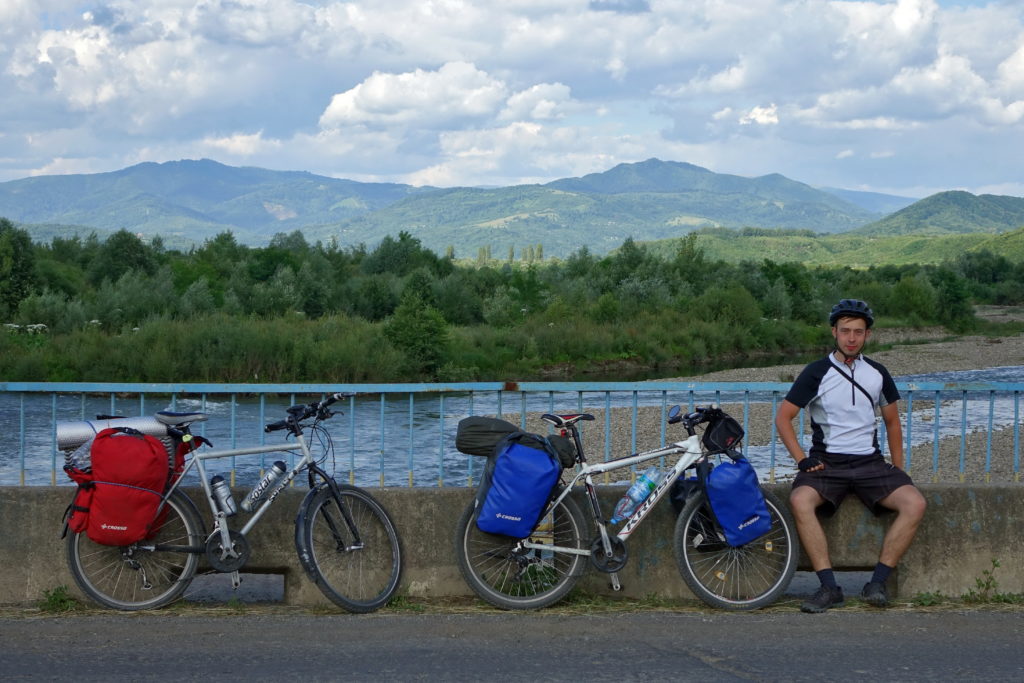 Komplet sakw Crosso Dry na moim rowerze (po prawej), podczas objazdówki Zakarpacia Ukraińskiego w 2017 roku.