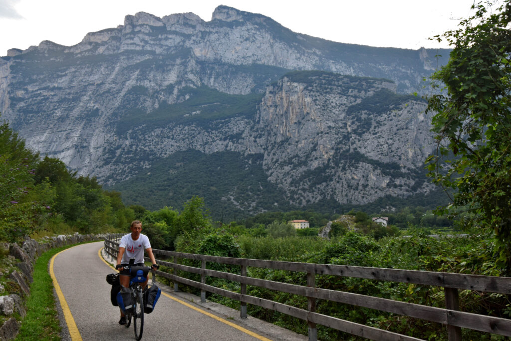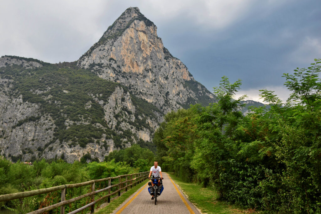 Pomiędzy Riva del Garda a Arco panuje spory ruch rowerzystów – dalej, aż do samego Sarche, jest zdecydowanie spokojniej. Na tym odcinku, początkowo niezauważalny podjazd, zaczyna robić się coraz bardziej strony – choć nadal daleko mu do podjazdu pod Pregasinę. Ścieżka stopniowo oddala się od koryta rzeki, zagłębiając się w rzadki las. Strzeliste góry nadal pozostają tłem tego pięknego szlaku.