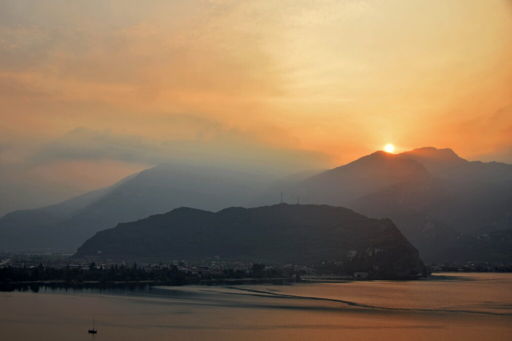 Jezioro Garda, leżące w północnych Włoszech, ciągnie się przez ponad 50 kilometrów i stanowi zlewnię rzek i potoków, wypływających z Dolomitów i Alp. Jest naturalną granicą klimatu śródziemnomorskiego z bardziej kapryśną aurą Alp. Jezioro na mapie wygląda niczym „wbite” w potężne masywy górskie, rosnące po obu stronach proporcjonalnie do zmniejszającej się odległości do Riva de Garda.
