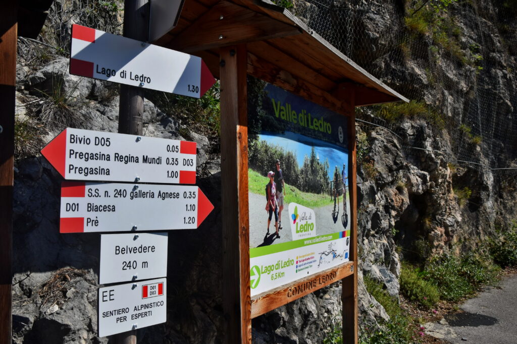Trasa do Pregasiny to obowiązkowy punkt programy, choćby do samej miejscowości lub punktu widokowego Belveder. Ten odcinek spokojnie przejedziecie rowerem trekkingowym, na Punta Larici i dalej raczej polecam już MTB.