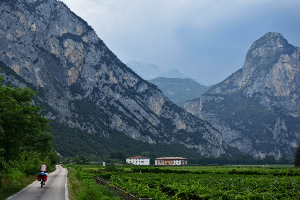 Tylko jedną z nich (wzdłuż rzeki Sarca, w kierunku Trydentu) przejechaliśmy z ciężkimi sakwami, opuszczając brzeg Gardy i zmierzając w kierunku Austrii. Ponadto, w trakcie naszego pobytu zjeździliśmy dwie najbardziej widokowe trasy na południe od Riva del Garda (dawną, nieużywaną już drogą, wspinającą się serpentynami do miejscowości Pregasina oraz do położonego w wyższych górach jeziora Lago di Ledro), a także krótką, rowerową wspinaczkę na Monte Brione – ponad 300-metrową skałę o przedziwnym kształcie, górującą nad miastem.