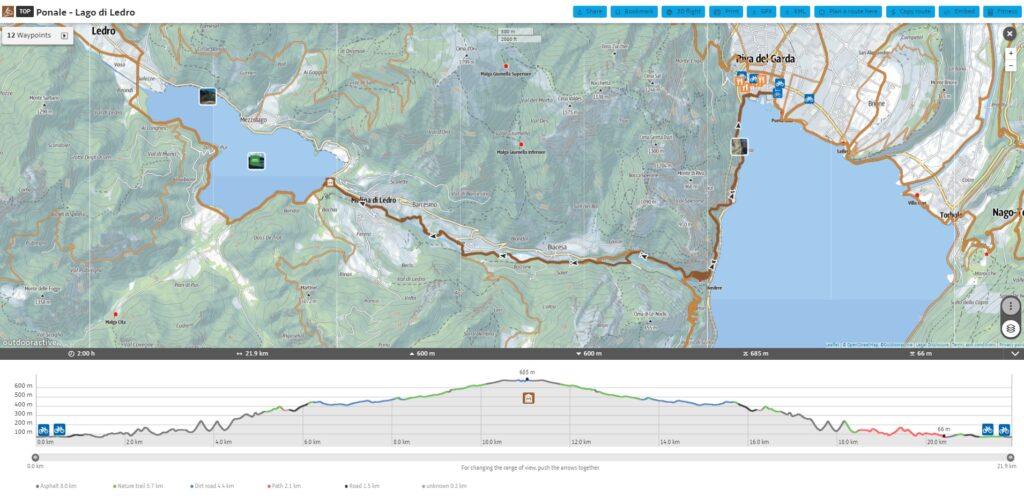 Szczegółowa trasa: Riva del Garda – Via del Ponale – Ponale Alto Belvedere – Biacesa – Molina di Ledro – Lago di Ledro