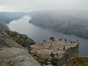 Przy jednym ze sklepów z pamiątkami spotykamy Polaka, oferującego akcesoria do surfingu. Można też wypożyczyć u niego kajaki. Ponoć tak wspaniała pogoda (bezchmurne niebo i prawie 20C), to w tej części kraju rzadkość. Norwedzy korzystają więc z każdej chwili i wystawiając się na słońce zalegają na leżakach przed domami.