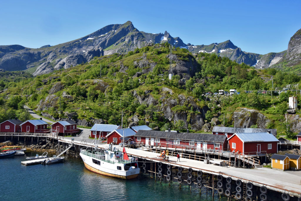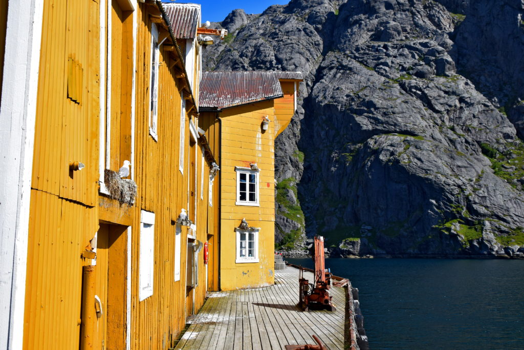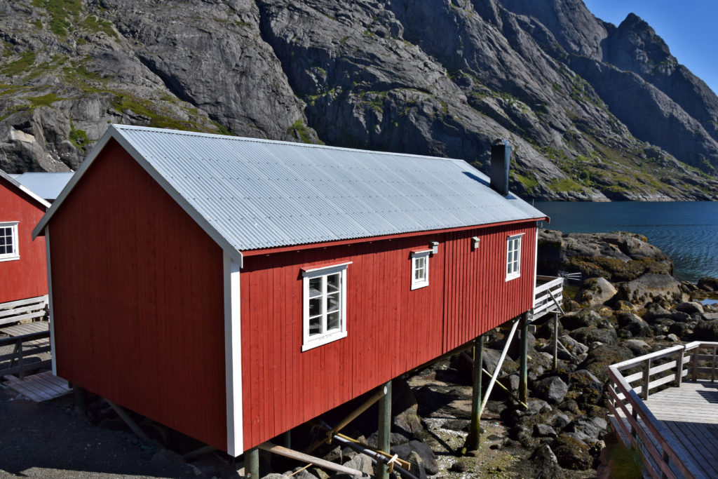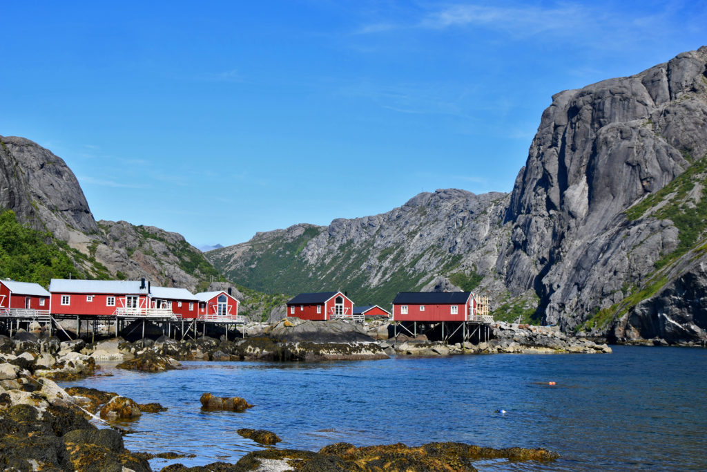Ostatni ostry zjazd, i przed oczyma ukazują się bordowe domki, z daleka zdające się wisieć nad wodami fiordu. Dopiero z bliska zauważamy liczne drewniane pale przytwierdzone do skał. Dzięki tym prostym konstrukcjom budynki trzymają pion oraz są chronione od fal w przypadku sztormu.