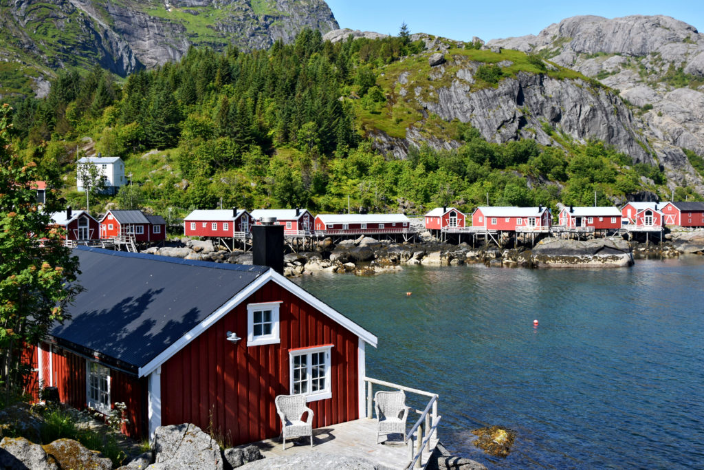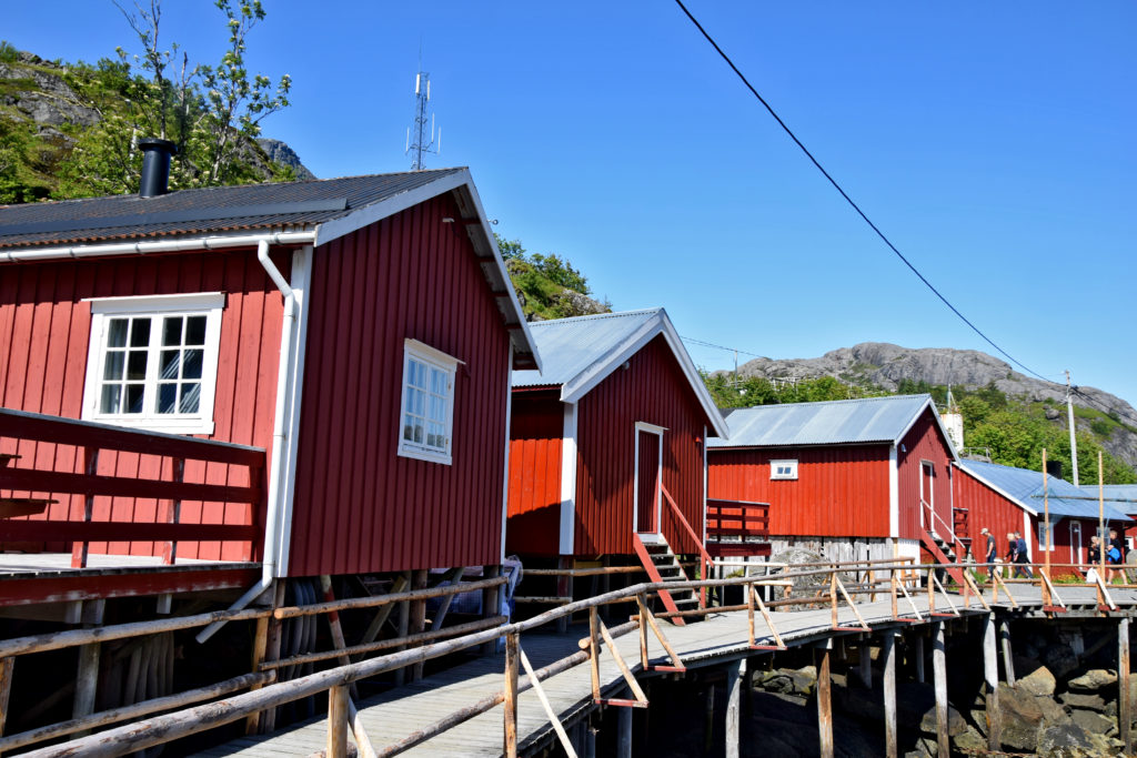 Tradycyjne domki rybackie w Norwegii były zwykle malowane czerwoną farbą – jest to szczególnie widoczne na Lofotach.